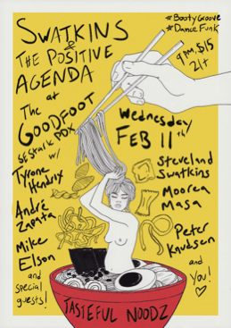 What an awesome Wednesday night we have planned for you! Fantastic keyboardist and friend of the goodfoot, Steve Swatkins, is in town for the evening and has invited all of his best musical compadres over for a party on our stage! Special guests include Tyrone Hendrix, Peter Knudsen, Andre Zapata, Moorea Massa and Mike Elson!! Hot damn! $15
