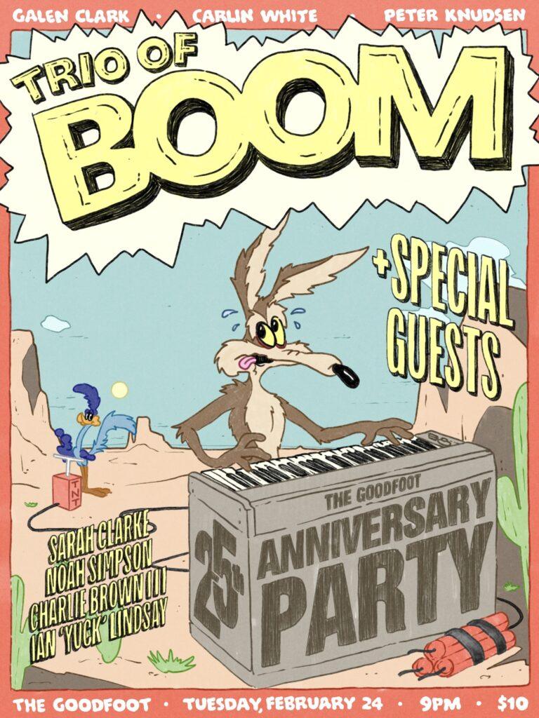 It's our 25th year anniversary week celebration! Tonight, Trio of Boom welcomes a stage load of special guests for two sets of hot and heavy Hammond organ-based funk. We hope to see you on the dance floor!