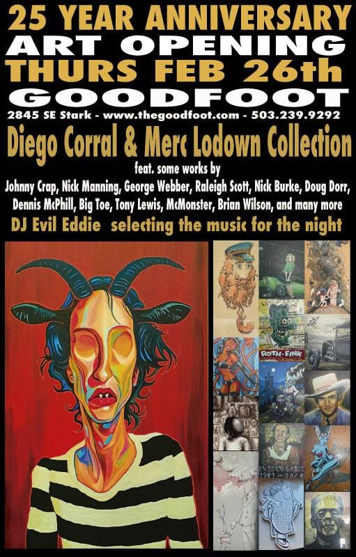 It's Last Thursday and time for another grand art opening! Our in-house curator, Jason Brown, has put together a fantastic show featuring works by Diego Corral and Merc Lodown Collection. As always, entry to the show is free, the drinks are terrific and all art will be available for purchase! Free!