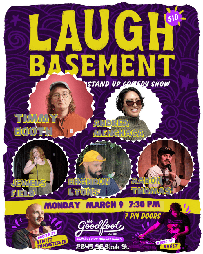 Laugh Basement, our weekly stand-up comedy showcase hosted by Hewitt Pagenstecher and DJ Bholt, returns with headliner Timmy Booth!