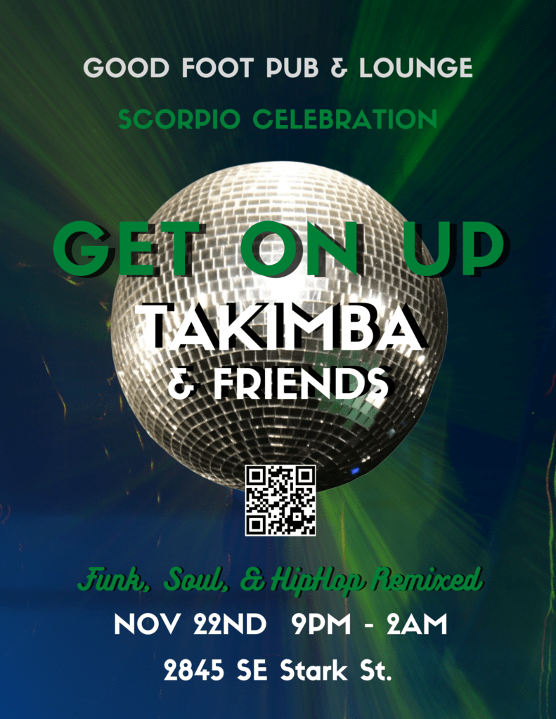 Takimba's Get On Up is an evening of re-mixes and mash-ups of classic hiphop, funk, soul and electronic dance cuts. Come and shake it 'til the wee hours ! $12