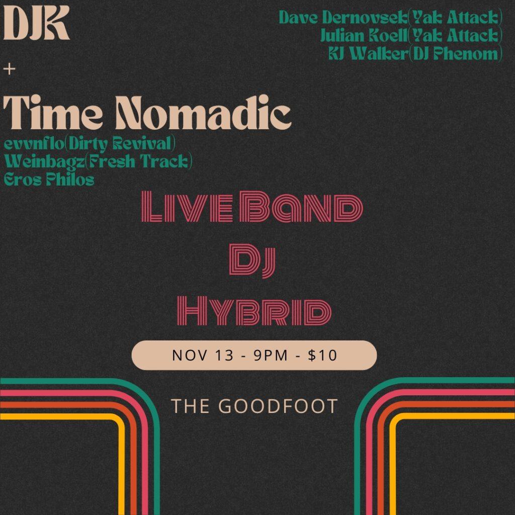 We are thrilled to host Fox Walker's first goodfoot residency this March! Fox Walker brings together an inclusive community that blurs the lines between audience and performer, where each concert is one of a kind. They work to emulate the stage shows of D’Angelo and Vulfpeck, where the crowd can expect a large cast of rotating characters performing at a high level. They also keep Bobby Caldwell, Sade, Jill Scott, Raphael Saddiq and Anderson Paak on shuffle when driving to shows. Tonight they are joined by the soulful hiphop of Coo Era with The Proof Horns! $5 and up sliding scale.